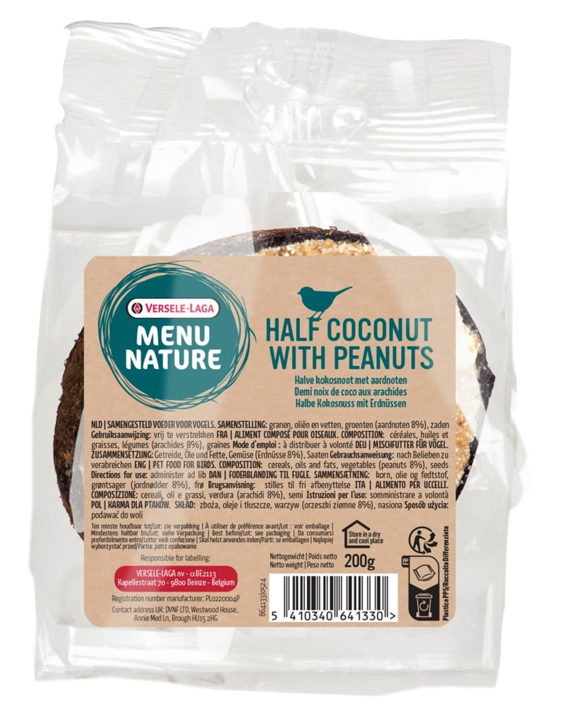 VERSELE-LAGA Menu Nature Fél kókuszdió zsírral és diótöltelékkel 200g eledel vadmadaraknak