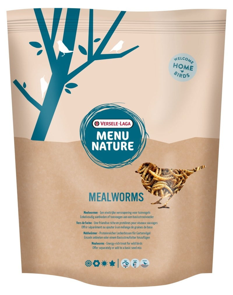 A Menu Nature Mealworms szárított lisztférgek a vadon élő madarak számára olyan csemege, amely nemcsak ízletes táplálékot, hanem a költési időszakban és a fiatal madarak számára szükséges energiát és fehérjét is biztosítja. Ezek a fehérlegy-lárvák ideálisak az olyan rovarevő madarak, mint a cinegék, a pintyek és a feketerigók számára.