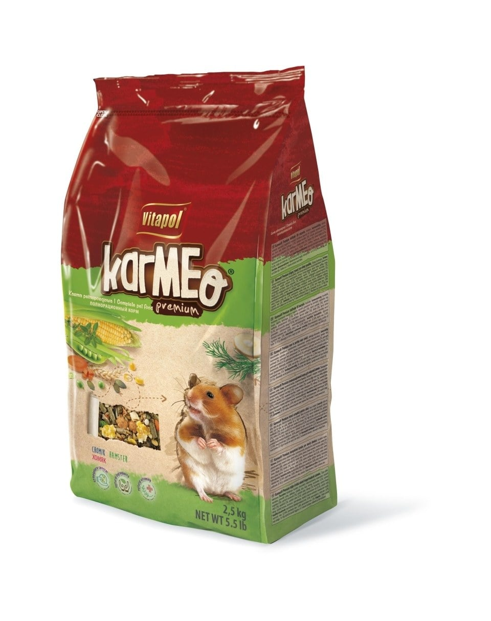 Teljes értékű, megfelelően kiegyensúlyozott keverék hörcsögök számára, amely tartalmazza a rágcsálók természetes környezetben található táplálékának összetevőit. A legjobb minőségű gabonafélék és magvak, granulátumok keveréke. Ezenkívül a tápot e rágcsálófaj táplálkozási igényeihez igazított összetételű és formájú extrudált összetevőkkel dúsítottuk. Ezáltal a táplálék emészthetőbbé válik. A takarmányt sárgarépával, hüvelyesekkel és szentjánoskenyérrel is dúsítottuk. A sáskabab számos vitamint, például A-, B2-, B3-, D-, E-vitamint és ásványi sókat biztosít: kalciumot, foszfort, káliumot, magnéziumot, vasat. Pozitív hatással van az emésztőrendszerre és hozzájárul a vér koleszterinszintjének csökkentéséhez. A magas béta-karotin, azaz A provitamin tartalmú sárgarépa hozzáadása fontos ásványi anyagokat biztosít, mint például kalcium, vas, foszfor, réz, cink, molibdén, magnézium, jód és kálium. A telítetlen zsírsavakban gazdag lenmag hozzáadása hatással van a bőrre és a szőrzetre, javítva azok általános állapotát. A változatos összetétel biztosítja, hogy a táplálék ízletes, vonzó és a hörcsög szervezetének megfelelő fejlődéséhez és működéséhez szükséges tápanyagokat biztosítja.