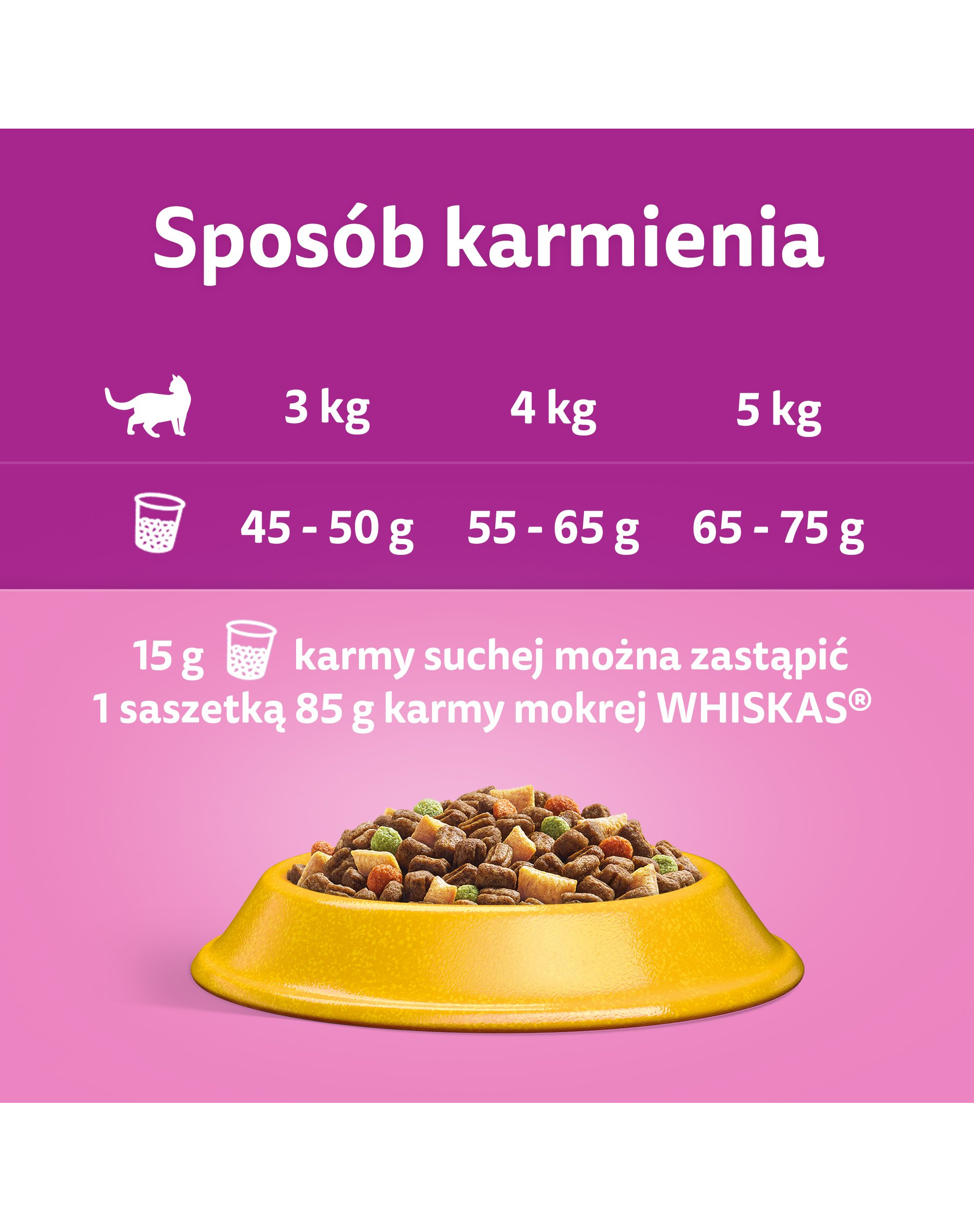 15 g száraztáp helyettesíthető 1 tasak 85 g-os WHISKAS nedves táppal.