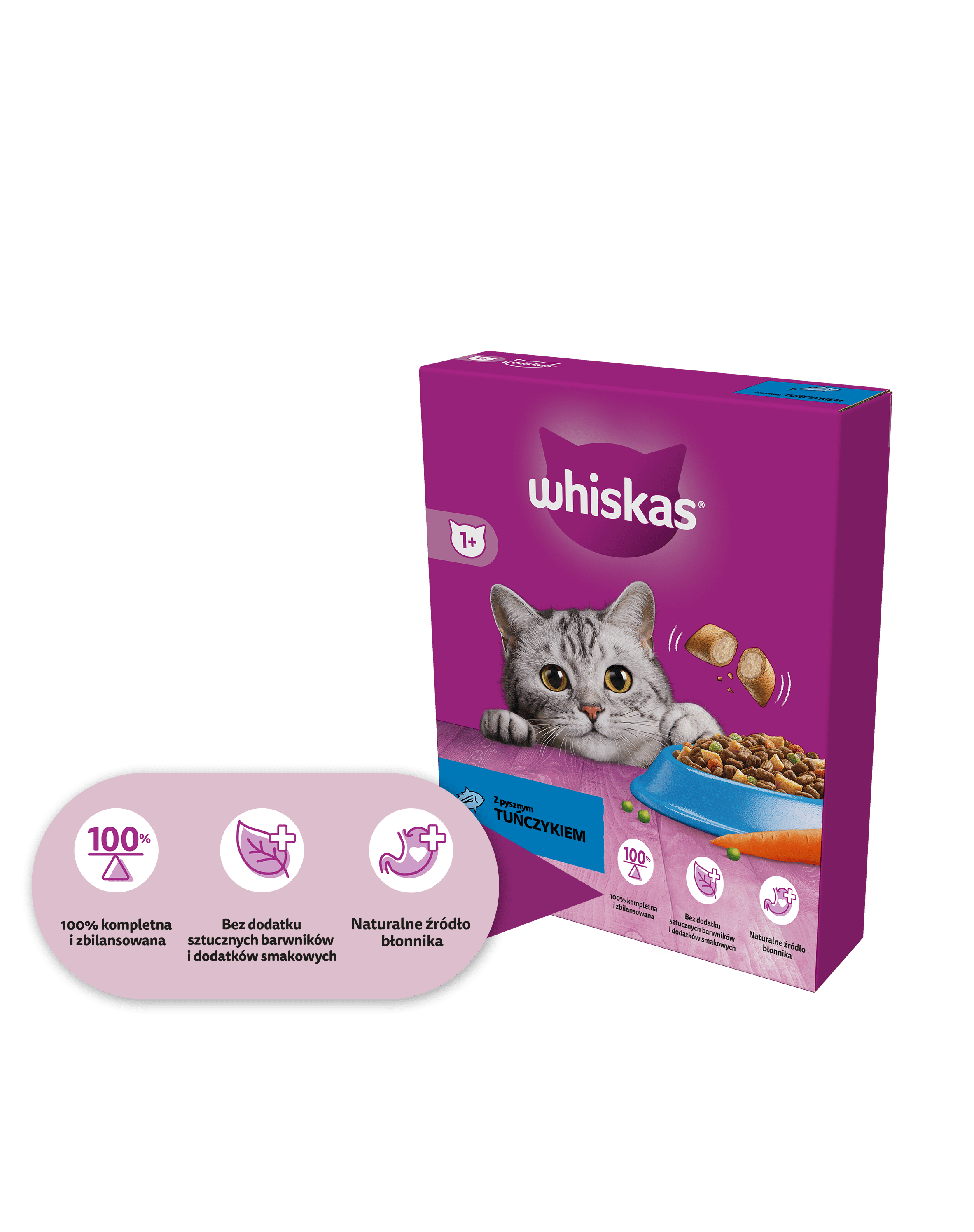 AWhiskas ízletes tonhallal egy teljes értékű szárazeledel pástétomokkal, amelyek kívülről omlósak, belülről pedig gyengéd töltelékkel rendelkeznek, amit a macskák imádnak. A kiváló minőségű fehérjét tartalmazó granulátumokat gondosan úgy állították össze, hogy macska barátjának mindent megadjanak, amire a doromboláshoz szüksége van. Az egészséges és étvágygerjesztő zöldségekkel - sárgarépával és borsóval - kiegészített teljes értékű és kiegyensúlyozott receptúra tökéletes adagot biztosít macskájának az összes alapvető tápanyagból - beleértve a vitaminokat és ásványi anyagokat is. A kizárólag megbízható beszállítóktól származó, kiváló minőségű alapanyagokból készült Whiskas eledelnek köszönhetően macskája boldog, egészséges és minden alkalommal szívesen jön a tálhoz etetéskor.