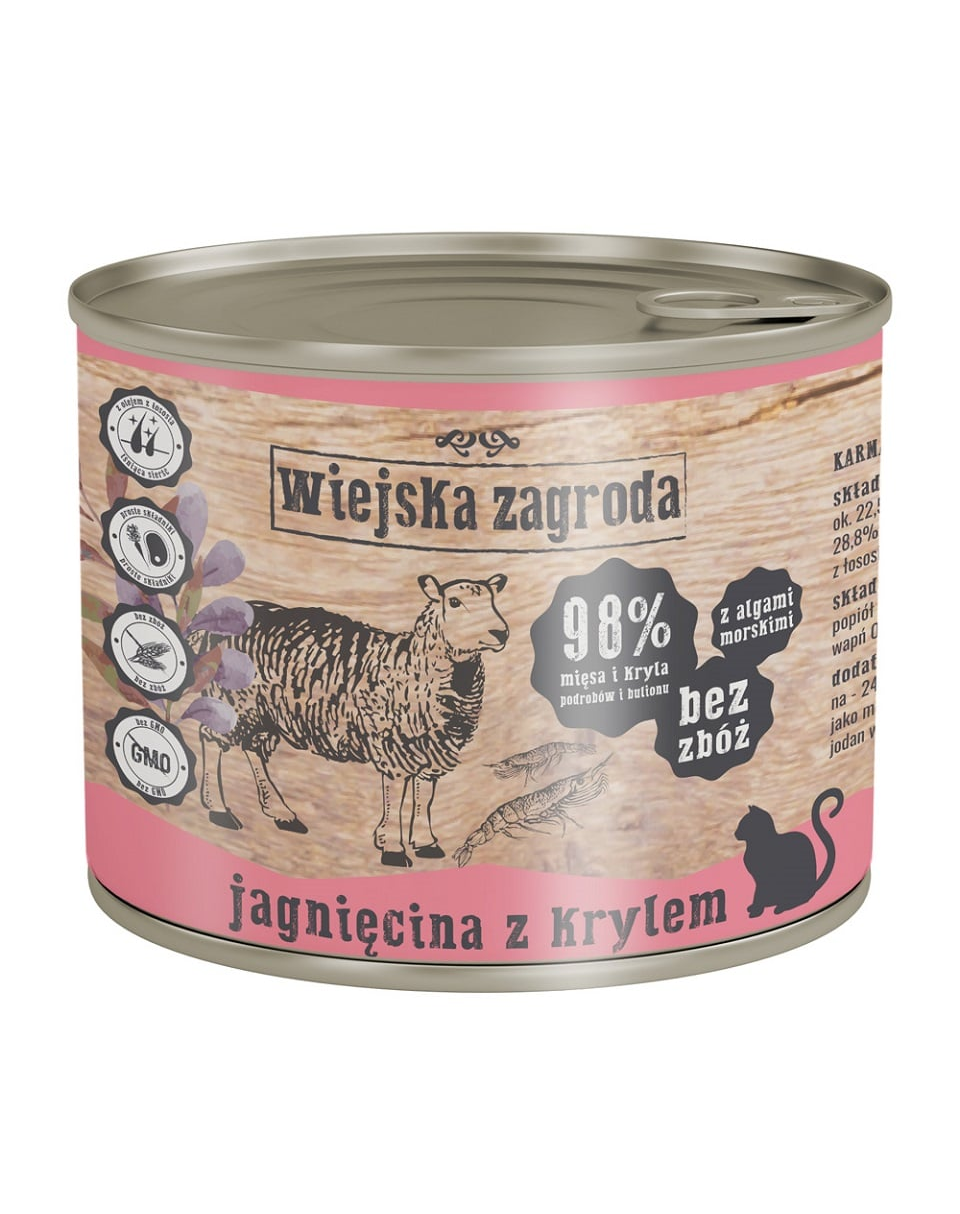 Az étel két húsféle hús kombinációja egy ízletes saját húslevesben. A bárányhús 66%-a belsőségekkel és krill hozzáadásával együtt a legjobb fehérjeforrás a macskák számára. Az adalékanyag a lazacolaj, amely Omega telítetlen zsírsavakat biztosít, amelyek erősítik a macska immunitását, szőrzetét és idegrendszerét. A tengeri alga jódforrás.
