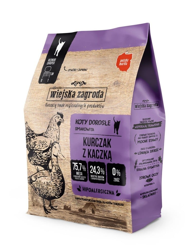 A Wiejska Zagroda egy lengyel, a legnagyobb gondossággal készített teljes értékű macskaeledel. A helyi beszállítóktól származó regionális termékek garantálják az összetevők frissességét és minőségét, amelyekből a tápjainkat készítjük. A tápok azzal a céllal készültek, hogy a macskáinknak azt adjuk, amire a legnagyobb szükségük van, vagyis a húsra!