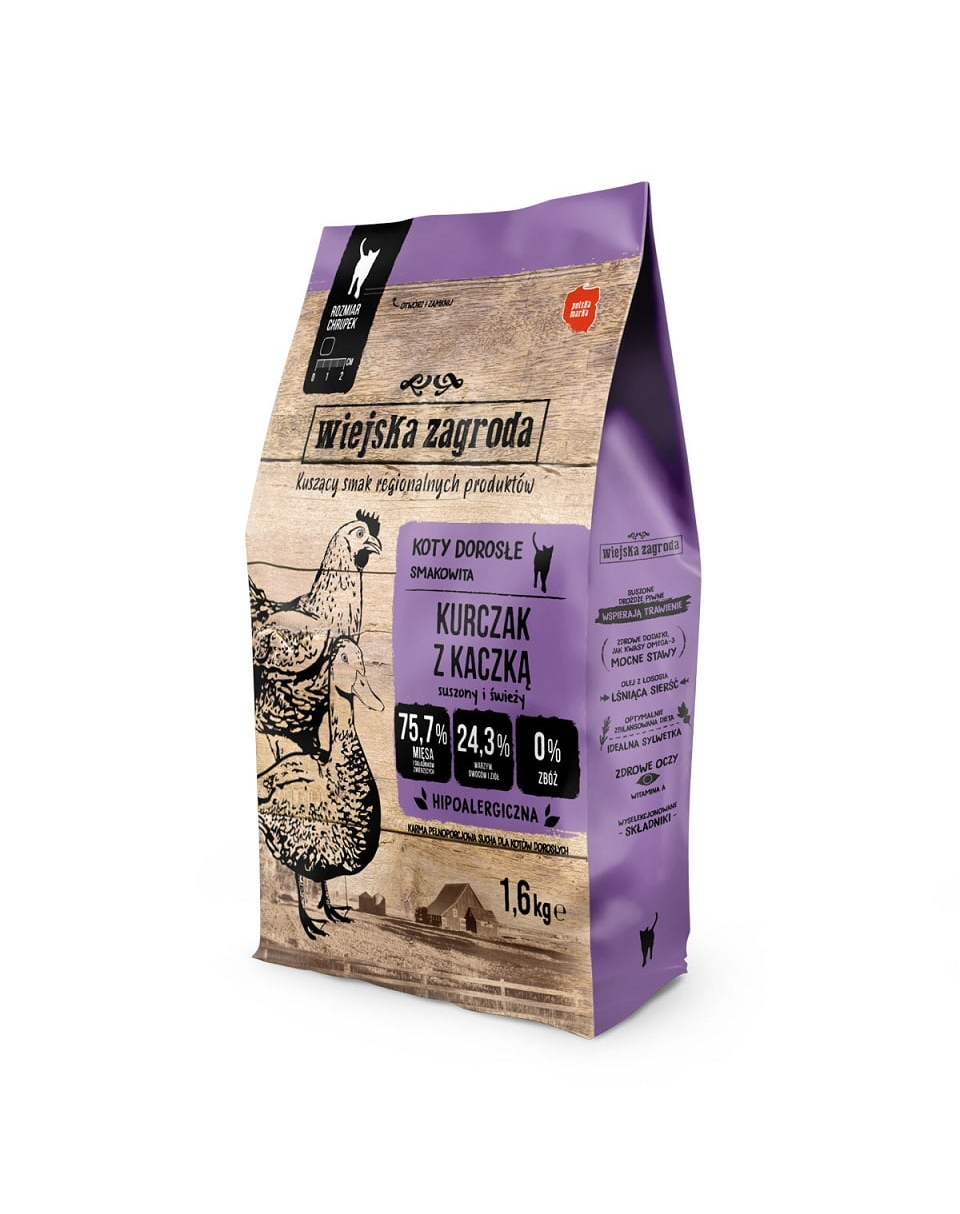 A Wiejska Zagroda egy lengyel teljes értékű macskaeledel, amelyet a legnagyobb gondossággal készítenek. A helyi beszállítóktól származó regionális termékek garantálják a frissességet és az alapanyagok minőségét, amelyekből az eledelünket készítjük. Az eledel abból az igényből született, hogy macskáinknak azt adjuk, amire a legnagyobb szükségük van - húst!