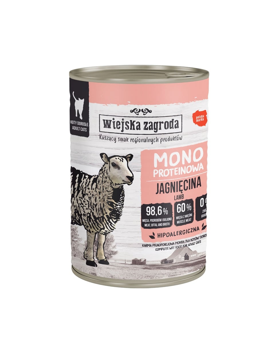 Ismerje meg a Wiejska Zagroda monoprotein nedves macskaeledelét! Minden konzerv egyféle húst tartalmaz, amely az összetevők listáján az első helyen szerepel.