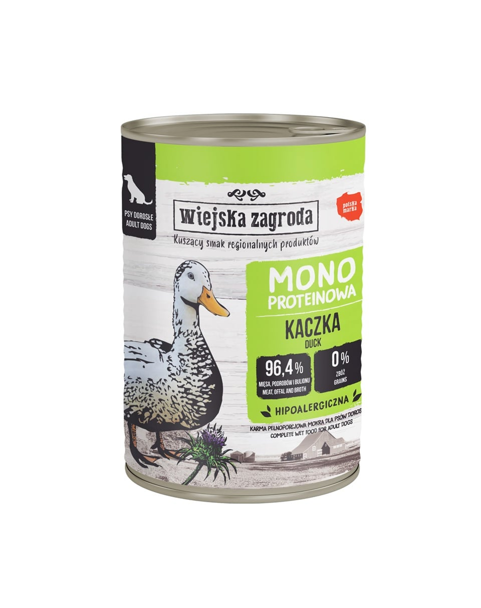Ismerjétek meg a Wiejska Zagroda monoprotein nedves eledelét kutyáknak. Minden konzerv egyféle húst tartalmaz, amely az összes összetevő között az első helyen áll! Ez különleges szuperkiegészítőket is tartalmaz gyümölcsök vagy zöldségek és gyógynövények formájában, amelyek további szerepet játszanak a kutyád egészségének megőrzésében.