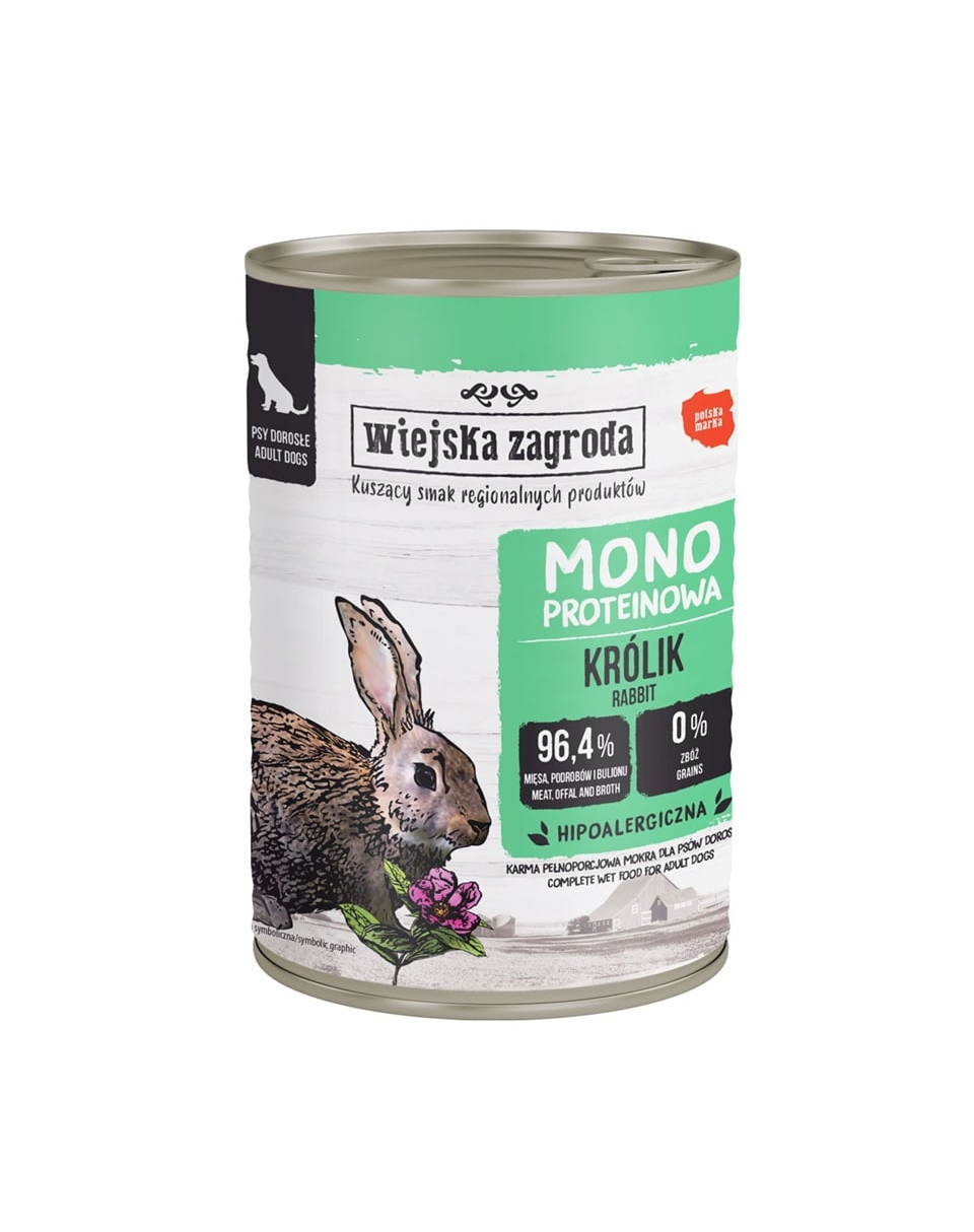 Ismerjétek meg a Wiejska Zagroda monoprotein nedves tápjait kutyáknak. Minden konzerv egyféle húst tartalmaz, amely az összes összetevő között az első helyen áll! Ez különleges szuperkiegészítőket is tartalmaz gyümölcsök vagy zöldségek, valamint gyógynövények formájában, amelyek további szerepet játszanak a kutyád egészségének megőrzésében.