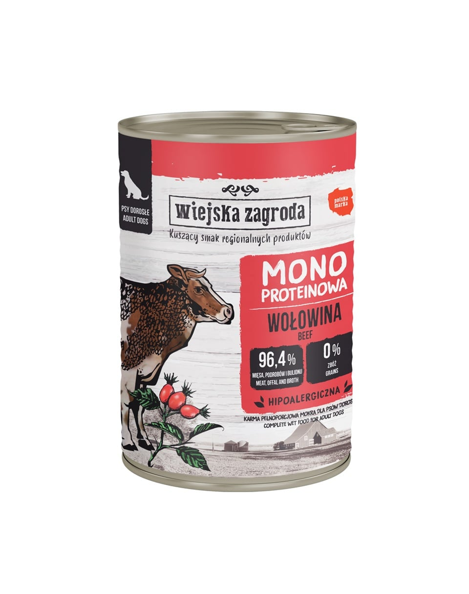 Ismerjétek meg a Wiejska Zagroda monoprotein nedves kutyatápjait. Minden konzerv egyféle húst tartalmaz, amely az összes összetevő között az első helyen áll! Ez különleges szuperkiegészítőket is tartalmaz gyümölcsök vagy zöldségek és gyógynövények formájában, amelyek további szerepet játszanak a kutyád egészségének megőrzésében.