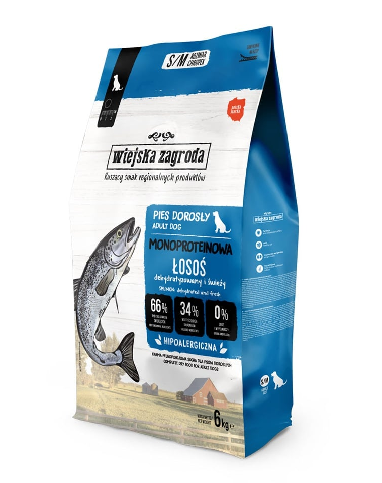 A Wiejska Zagroda monoprotein vonalak kiegyensúlyozott tápok, amelyek érzékeny emésztőrendszerű és allergiás hajlamú kutyáknak készültek. Csak egy állati fehérjeforrás alkalmazása, a gabonák és hüvelyesek hiánya csökkenti az ételre adott nem kívánt reakciók kockázatát, míg a számos egészségügyi kiegészítő támogatja a megfelelő emésztést és enyhítheti az allergiával vagy visszatérő gyomorproblémákkal kapcsolatos gyulladásos állapotokat. A táp összetevői a bőr egészségét és az ízületi betegségek megelőzését is támogatják.