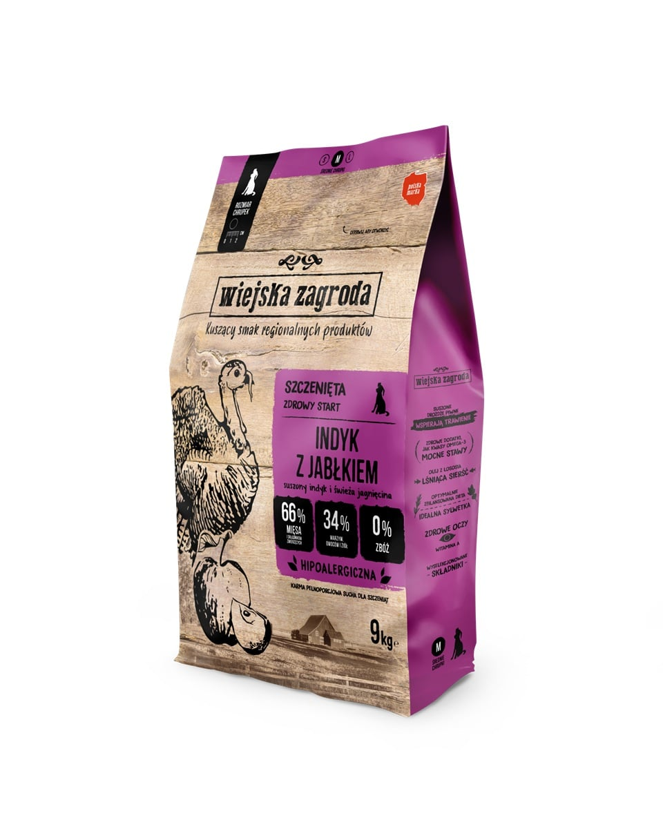 A Wiejska Zagroda egy lengyel, természetes összetevőkből, a legnagyobb gondossággal készült teljes értékű kutyatáp. Helyi beszállítóktól származó, friss alapanyagokkal dolgozunk, amelyek révén kutyája azt kapja, amire valóban szüksége van: magas hústartalom, értékes állati összetevők, hasznos zöldségek, gyümölcsök, gyógynövények – minden gabona, mesterséges tartósítószer és felesleges töltőanyag nélkül!