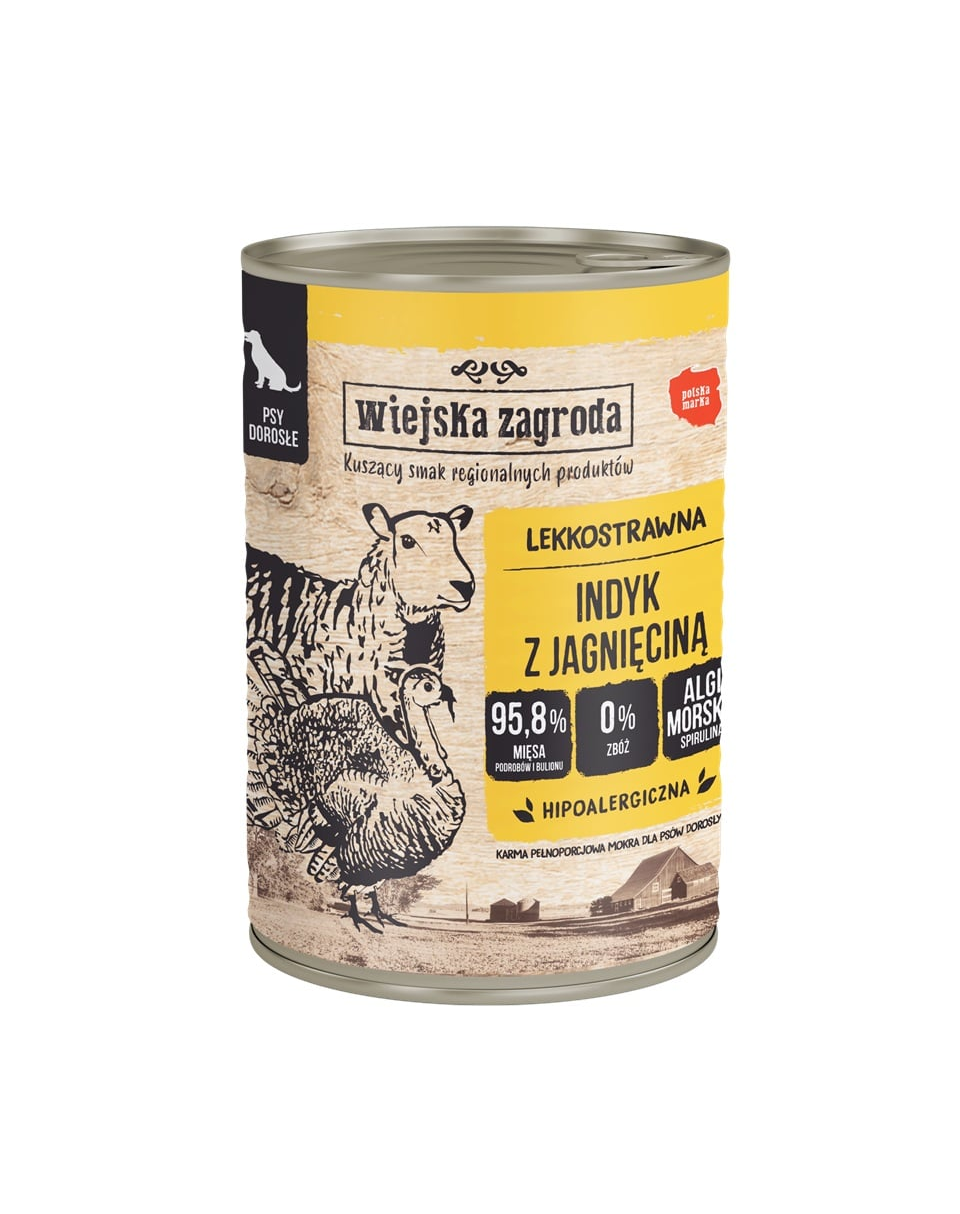 Eledel perészletes nedves kutyáknak felnőtteknek WIEJSKA ZAGRODA Pulyka bárányhússal