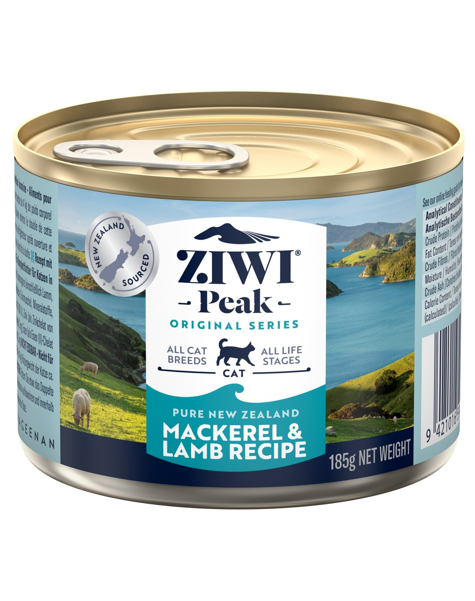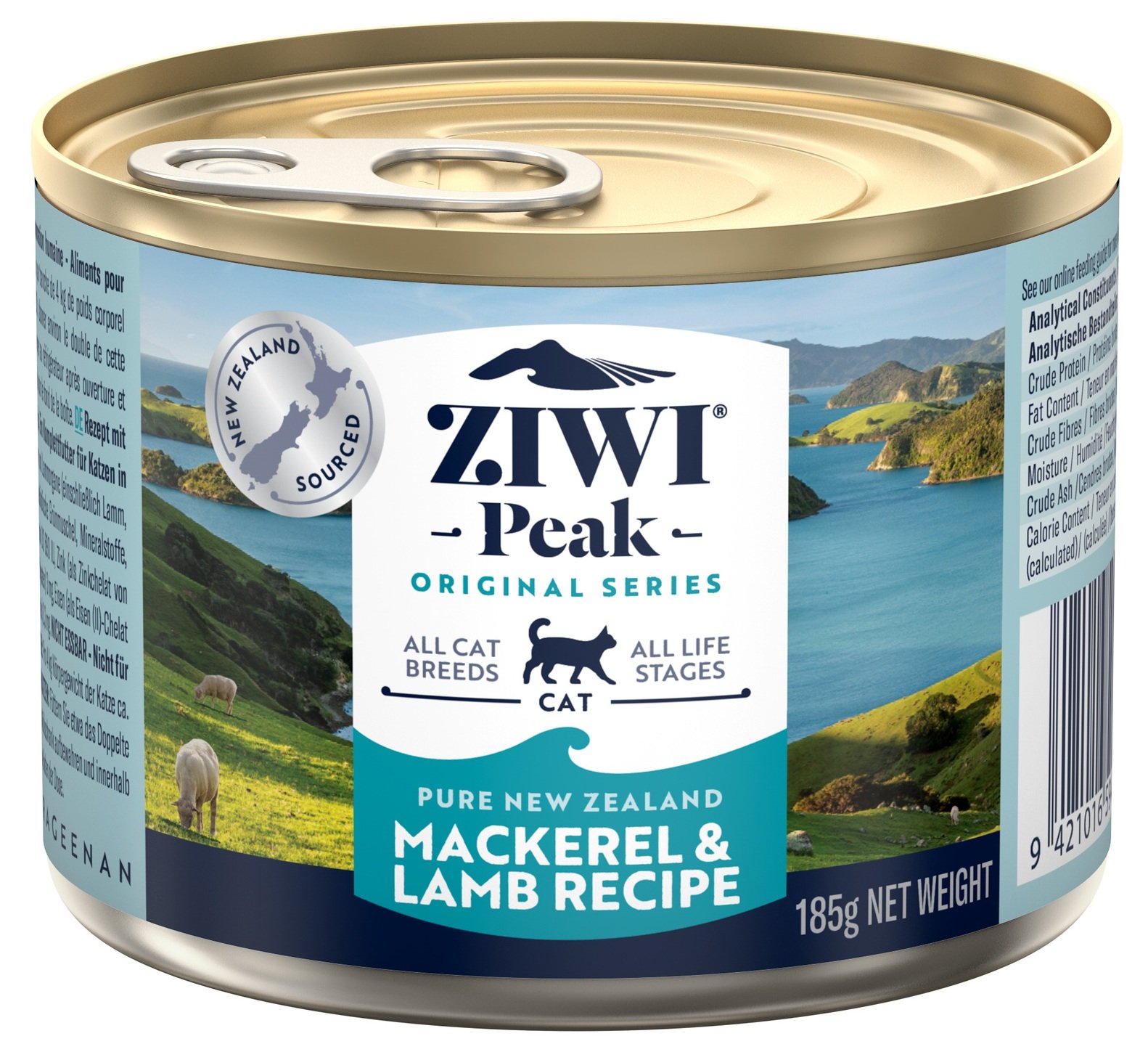 Új-Zéland szárazföldjének és tengerének legjava. Vad és fenntartható kék makréla Új-Zéland északi szigetének távoli vizeiből, valamint fűvel táplált bárányhús, amelyet dús fűvel és lóherével tápláltak. Finom kombináció egy nedvességben gazdag receptben, amely még a legnyűgösebb macskákat is elcsábítja.
