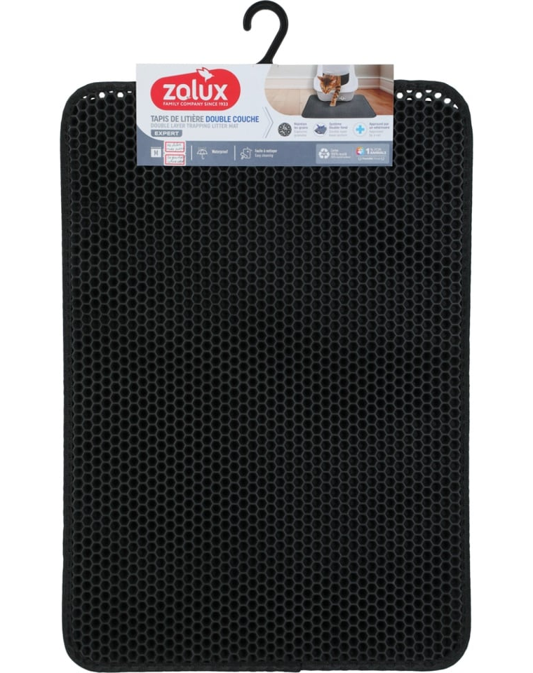 A kétrétegű alomszőnyeg praktikus és hatékony módja a felesleges alom eltávolításának és a tökéletes higiénia fenntartásának. A termék méhsejtes szerkezetű, amely az alomszemcséket a szövet barázdáiba zárva tartja. Ez megakadályozza, hogy az alom szétterjedjen a szobában, és segít tisztán tartani kedvence WC-jét. A szőnyeg két részből áll: egy sima, vízálló bélésből és egy mézhálós szövetből. Amikor a háziállatok a szőnyegen sétálnak, az alomrészecskék átjutnak a külső szöveten lévő lyukakon, és a termék belsejében rekednek. A szőnyeg tisztításához egyszerűen nyissa ki, válassza el a perforált részt a sima résztől, és az összegyűjtött hulladékot közvetlenül a szemetesbe dobja. A termék állatorvosi jóváhagyással rendelkezik, és minden típusú alomtálcában és WC-ben, valamint minden típusú macskaalommal használható.